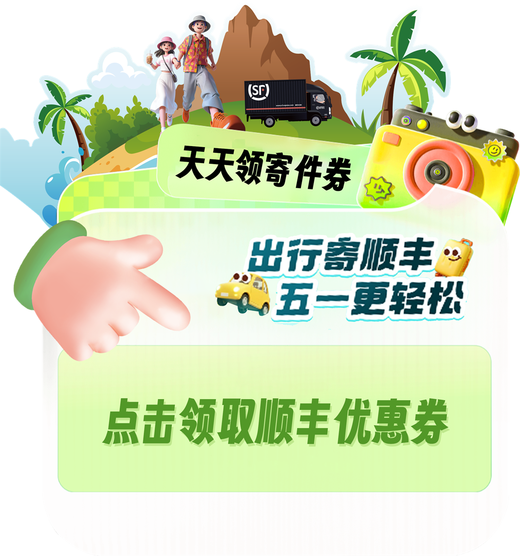 生成海报后点击“好运寄递”,跳转顺丰小程序领取优惠券;完成寄递可直接获得品牌特色进出周边礼“满载明信片 + 城市特色行李牌”。